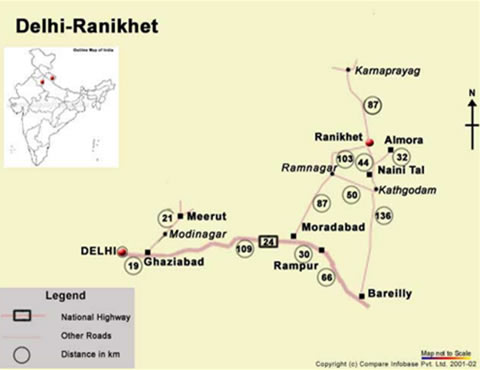 Air: Pantnagar at a distance of 70-kms is the nearest airport. Delhi at a distance of 300-kms is the nearest international airport.